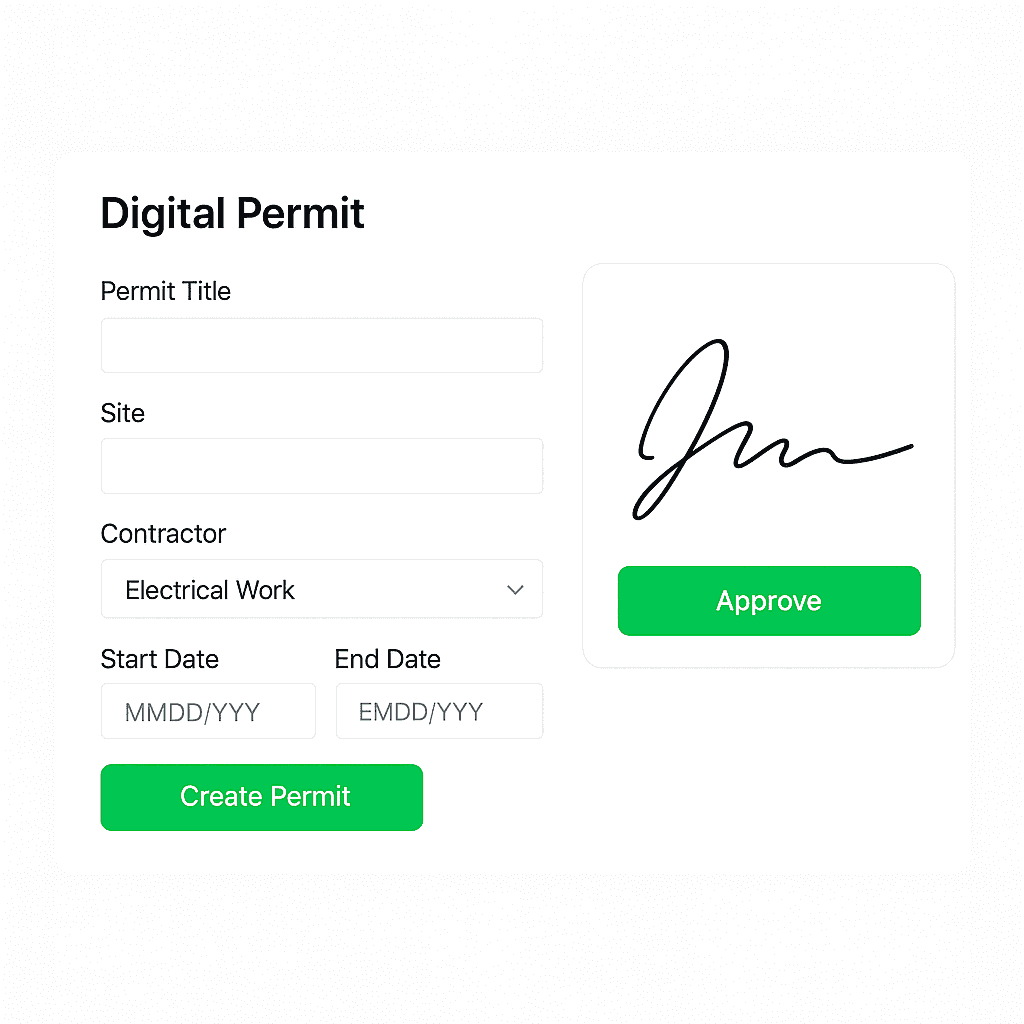 Contractors and supervisors can create, review, and approve permits directly on-site. No more delays or lost paperwork - everything happens in real-time.